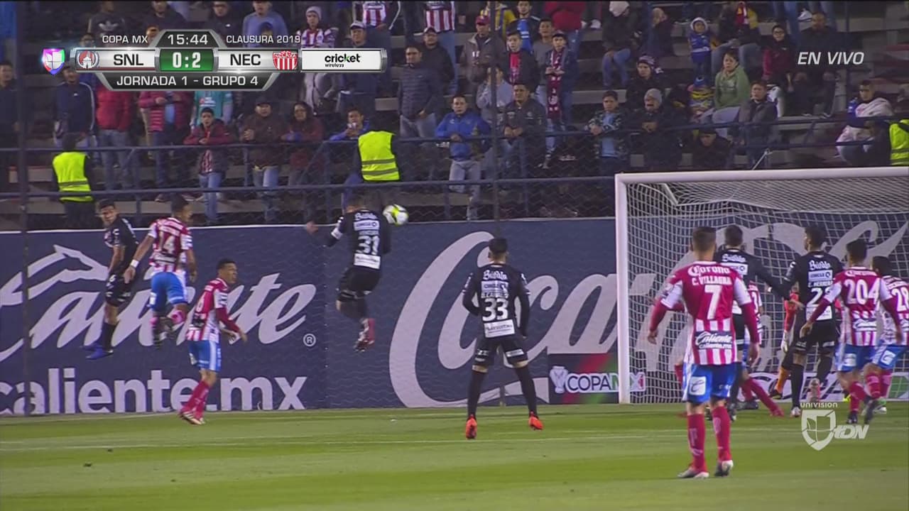 En una jugada que pareció un calco del primer gol, luego de un tiro de esquina ejecutado por Osmar Mares, apareció Ventura Alvarado para cabecear libre de marca. San Luis 0-2 Necaxa.
