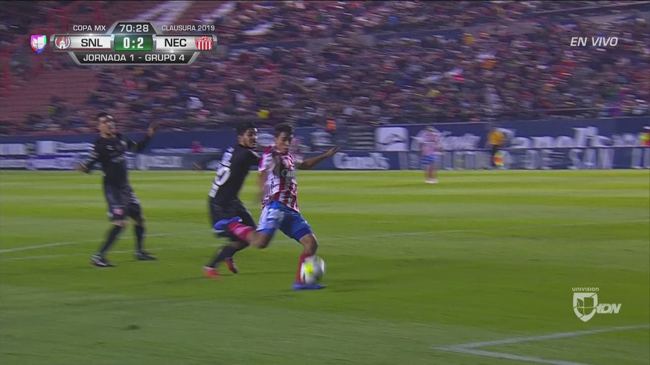 En la primera pelota que toca, Salvador González la bajó con el brazo y definió como crack. El gol fue anulado y el joven amonestado.