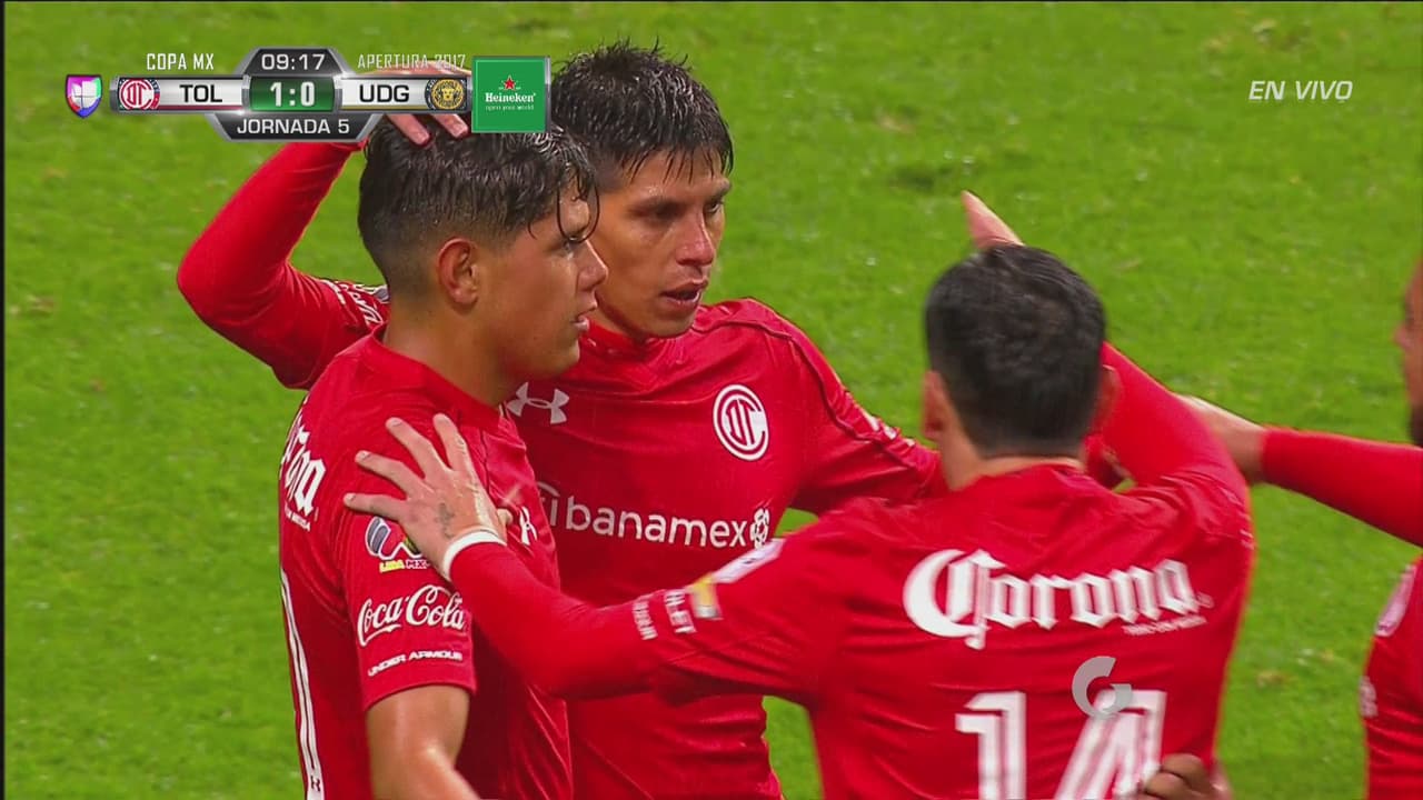Toluca se fue al frente en su partido ante Leones Negros cuando Barrientos recibió un pase filtrado preciso y batió en su definición al portero Florencio Morán.