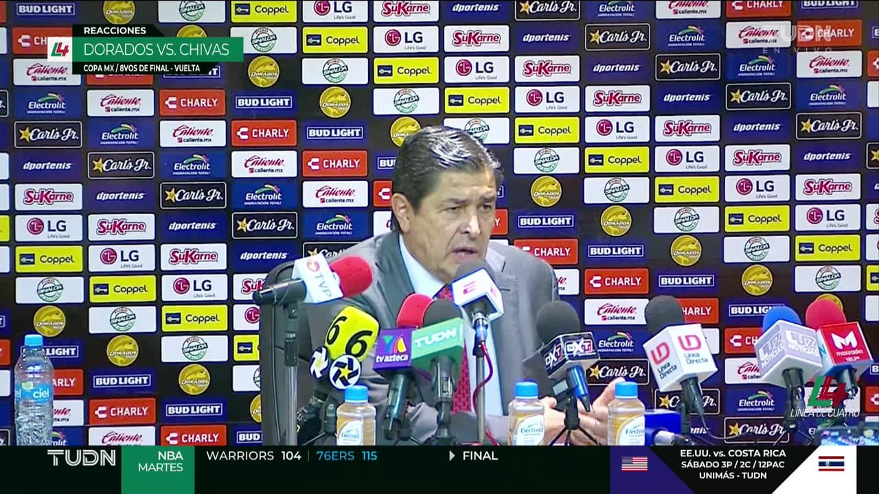 “Hay que darle mucho mérito al equipo de Dorados, hizo un gran segundo tiempo aquí, en Guadalajara fueron mejores que nosotros, se me hizo muy justo el empate, y ellos tiraron muy bien los penales. En términos generales sí es un fracaso para nosotros, nos sentimos mal, apenados con nuestra afición, queríamos seguir en el torneo de Copa, los jugadores están anímicamente golpeados”.