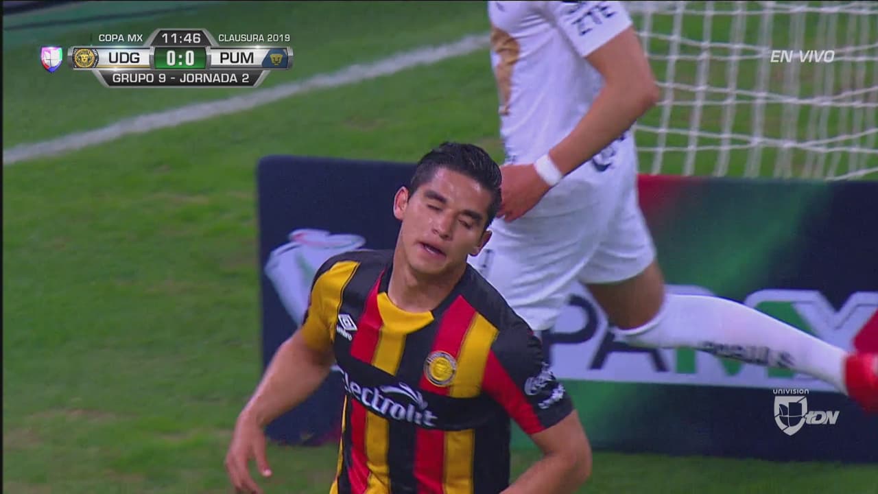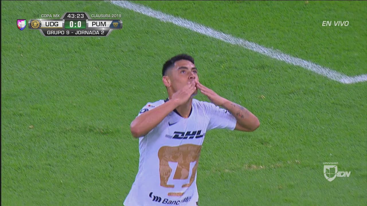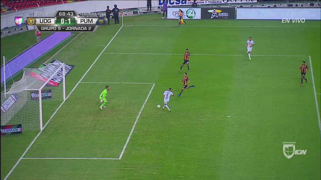 Justo antes de marcharse a los vestuarios llegó el primer tanto del partido, cuando Felipe Mora apareció en el segundo palo y la cruzó para el 1-0 de Pumas sobre la UDG.