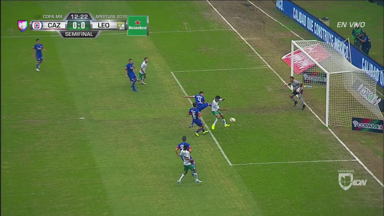 Centro desde la izquierda, Calerose cuela entre los centrales pero su remate no tuvo dirección de gol.