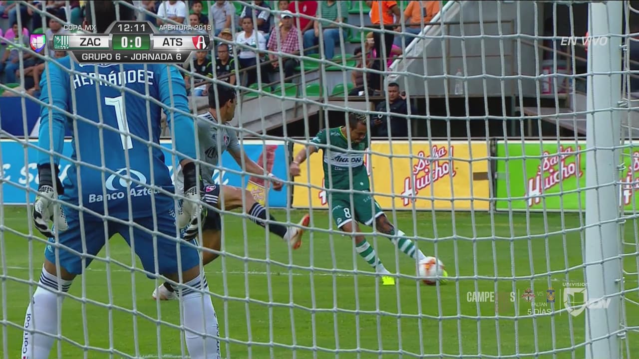 ‘Cheche’ Hernández no llegó a conectar el balón por más que se lanzó, el centró salió desde la banda izquierda, en la primera llegada de peligro del local.