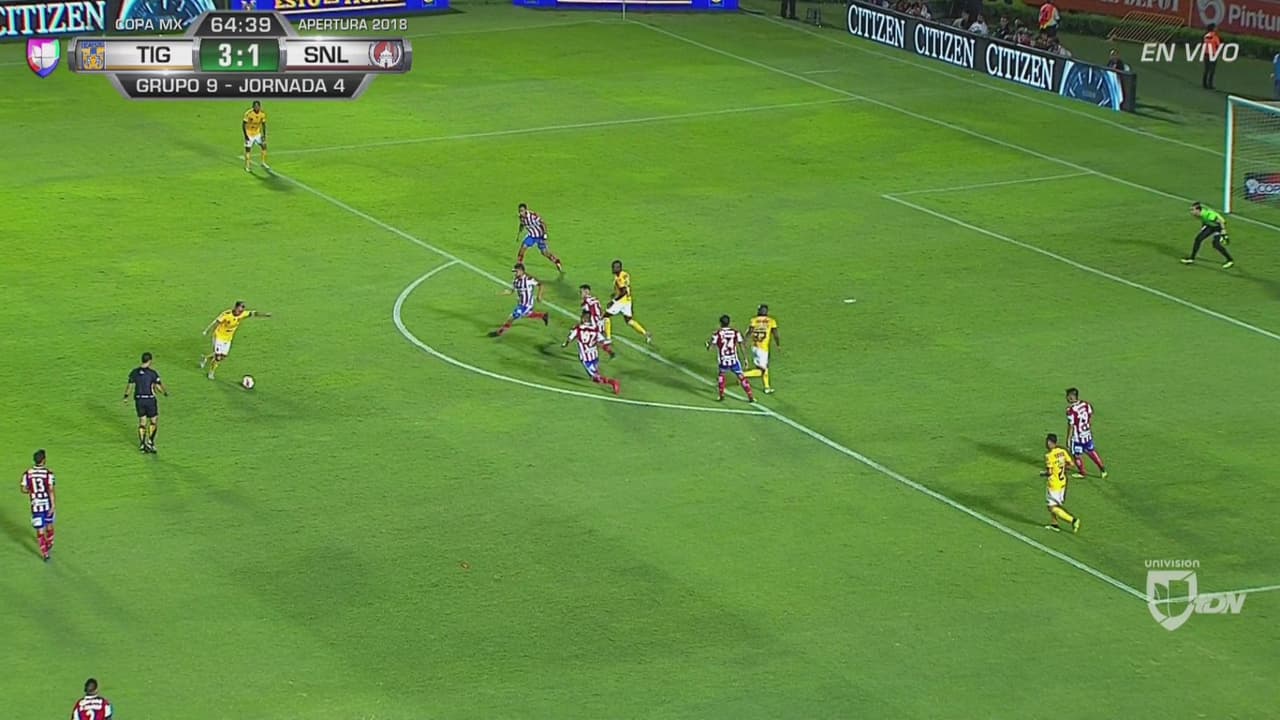 Espectacular volada del arquero de San Luis, Roberto Salcedo que evita el cuarto gol.