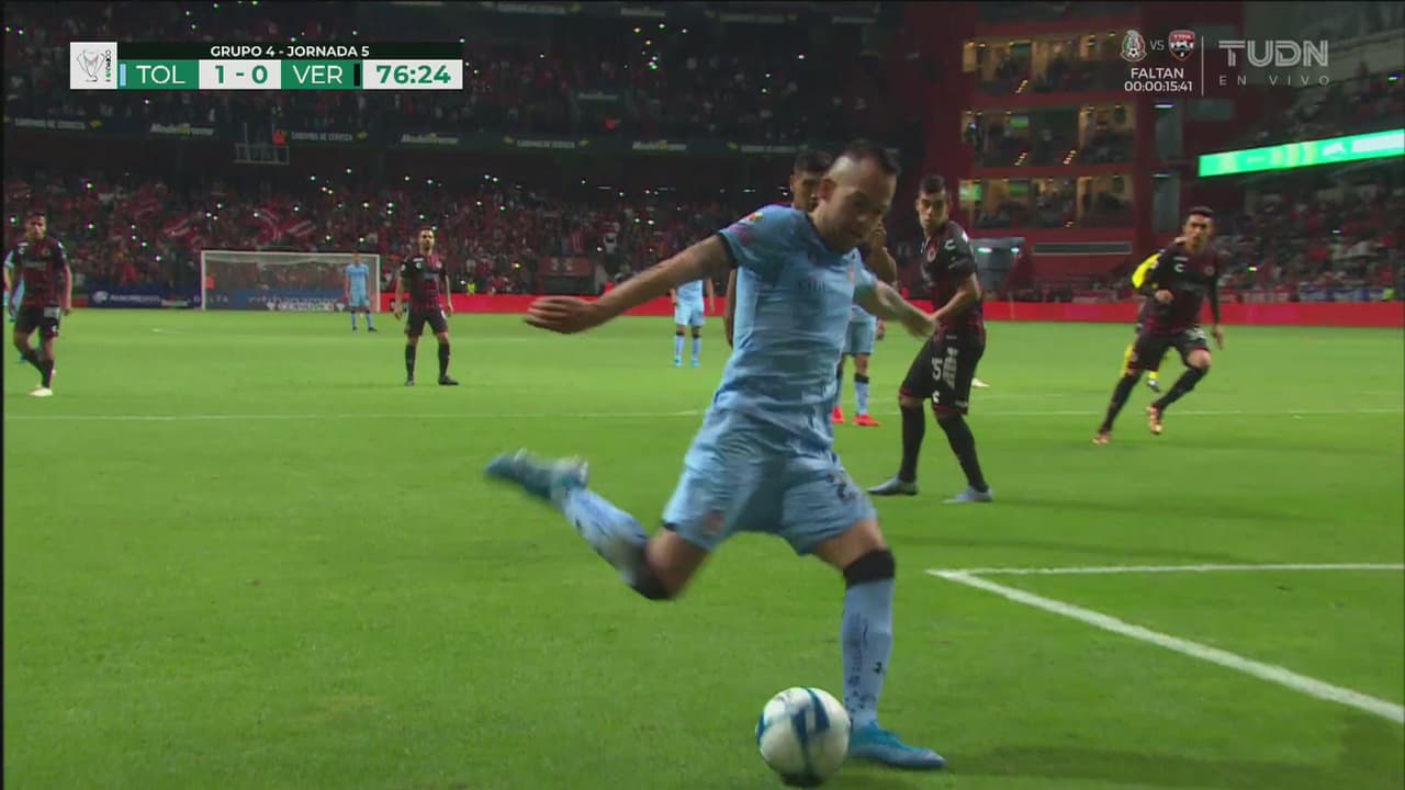 El volante de Toluca evadió a dos defensores del Veracruz, pero le faltó ángulo para una mejor definición.