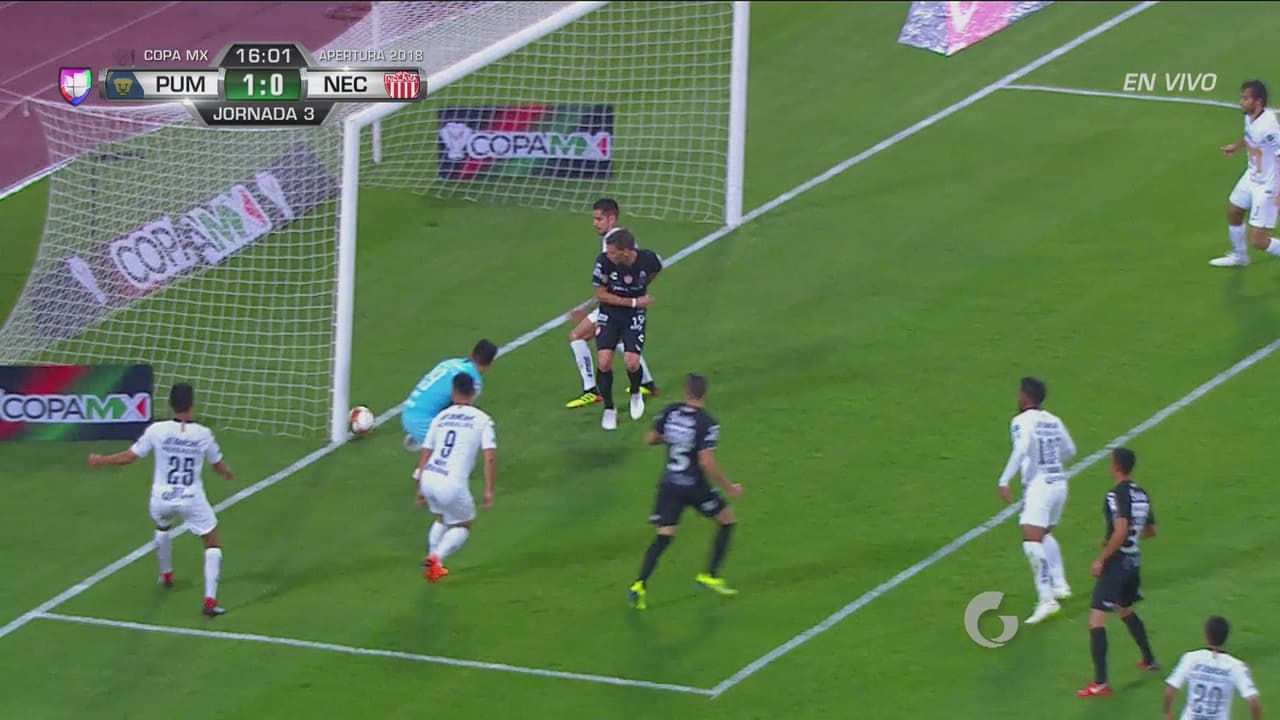 Necaxa estuvo muy cerca del empate, pero no supo definir cuando el balón pegó en el poste y luego merodeó el gol.
