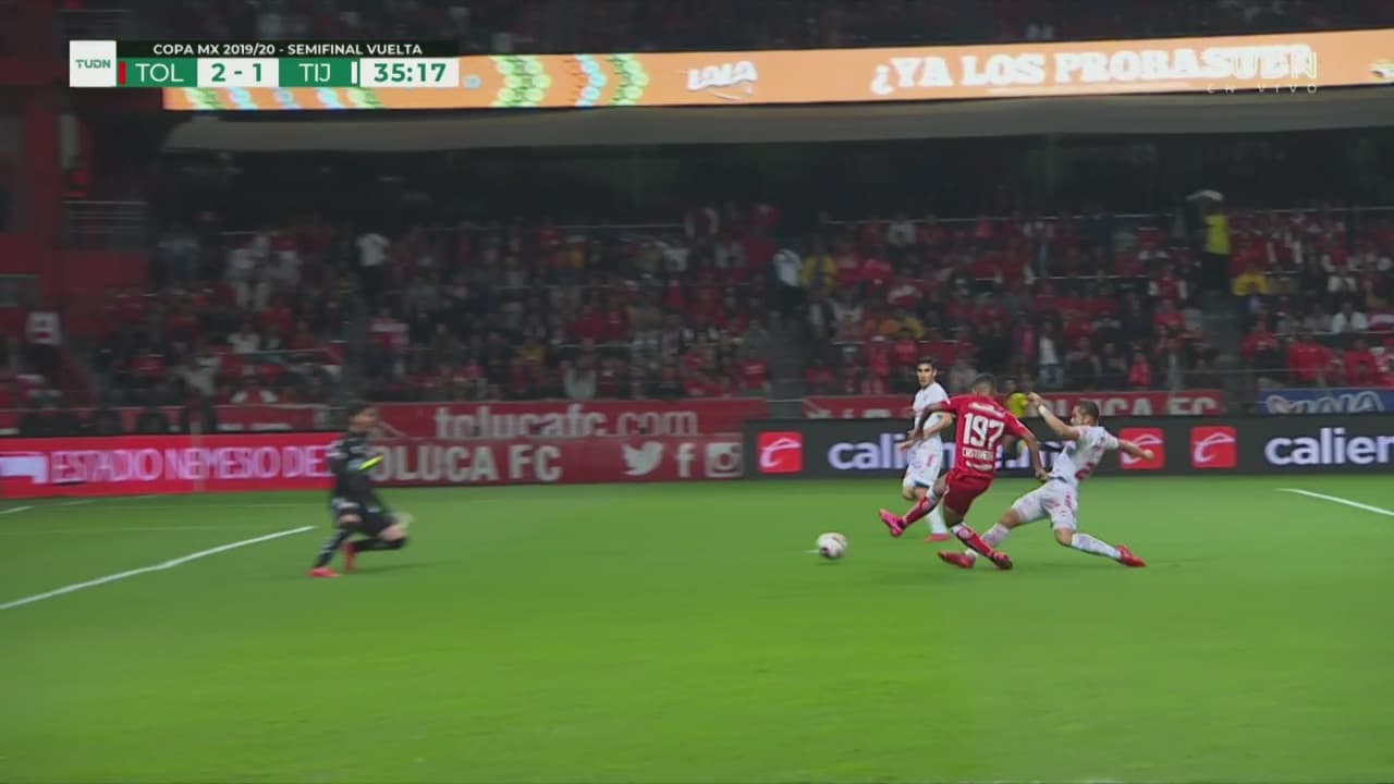 Con un Toluca ya entregado, Miguel Ángel Barbieri remató de frente al marco e, incluso con ayuda de la zaga, puso el cuarto tanto fronterizo y el séptimo en el global. Los Xolos confirmaron que el Estadio Nemesio Diez es territorio bendito para ellos y están ya en la Gran Final de la Copa MX.