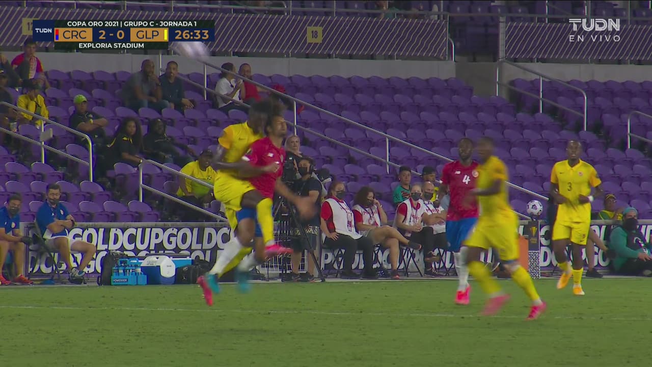 El jugador de Costa Rica buscó por aire contra Solvet, quien salió ileso en la jugada y fue amonestado.