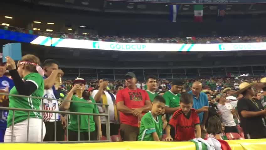 Los miles de aficionados aztecas que se dieron cita en el juego entre el Tri y Jamaica entonaron el himno de México con gran orgullo.