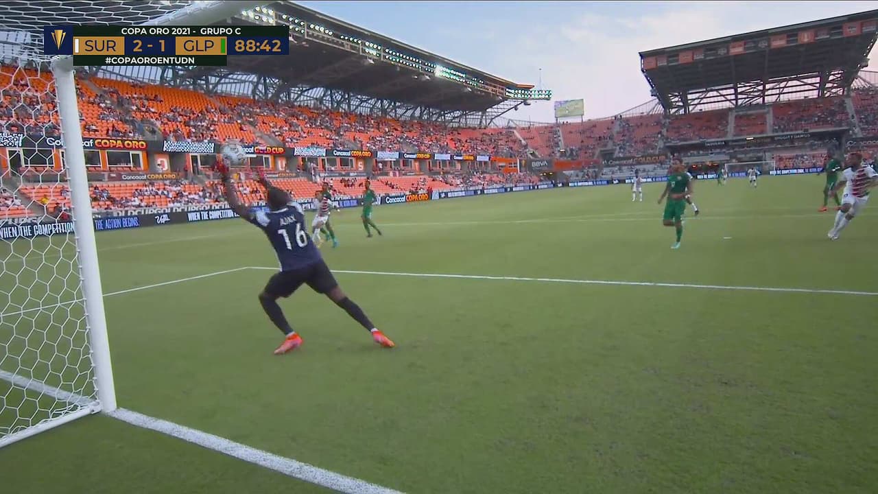 El arquero de Guadalupe desvió un zapatazo que prendió el delantero de Surinam al 82’.