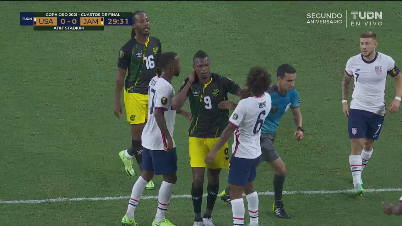 El ariete de Jamaica se llevó la falta, pero al incorporarse fue a empujar al ‘6’ del Team USA al minuto 29.