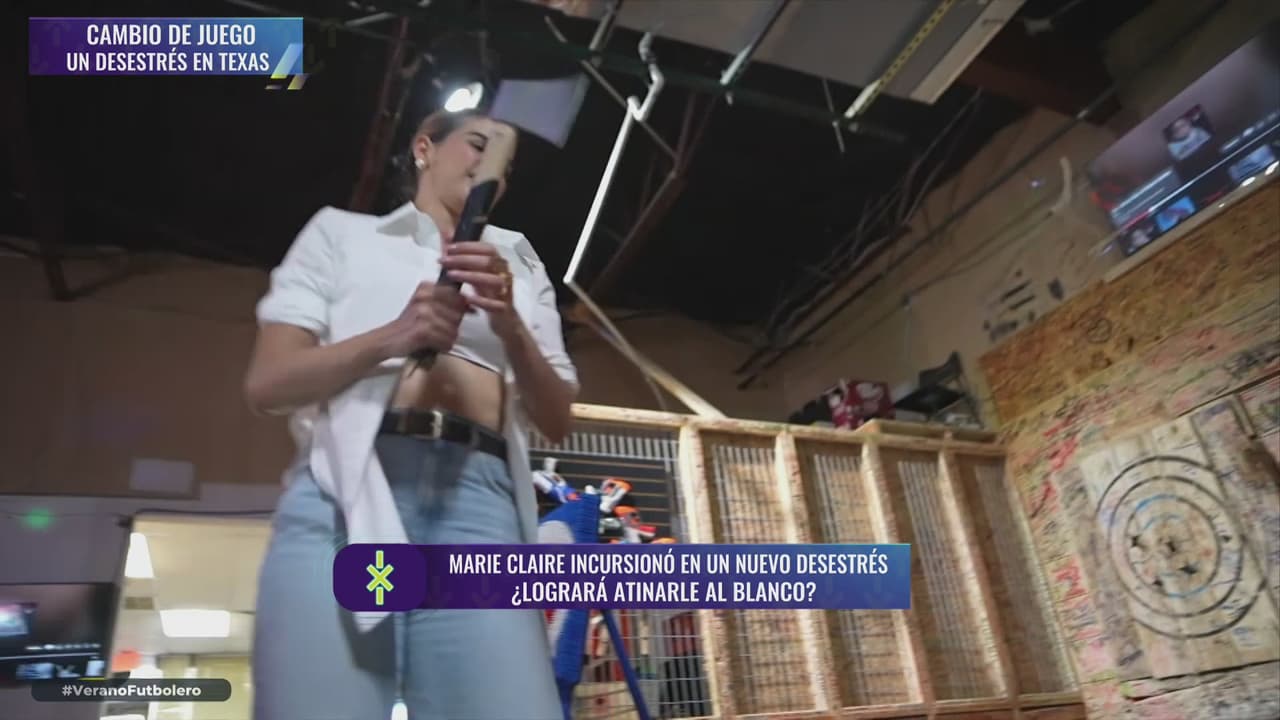 Marie Claire probó suerte con las hachas para relajarse de tanto trabajo.