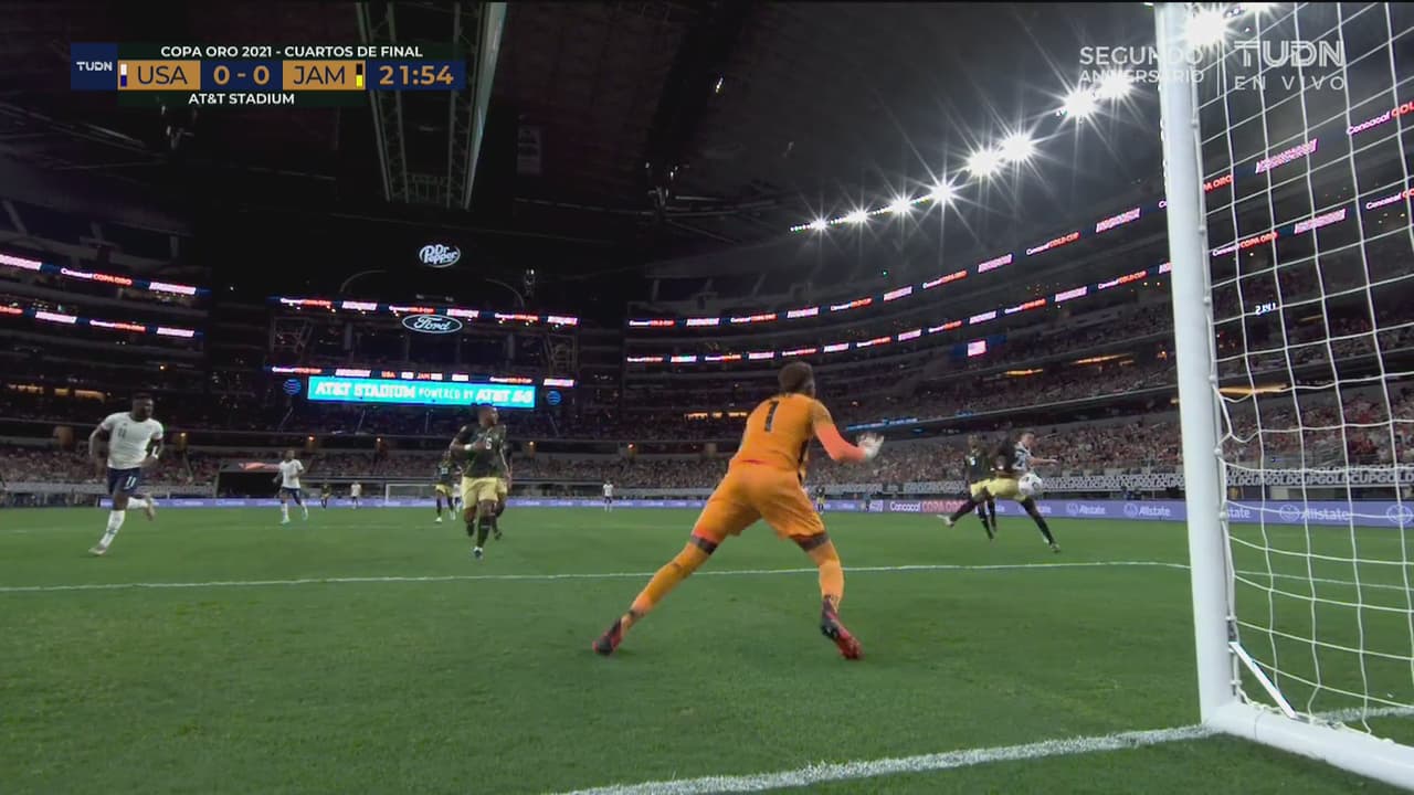 El portero de Jamaica alcanzó a manotear el disparo potente a la entrada del área de Matthew al 22’.