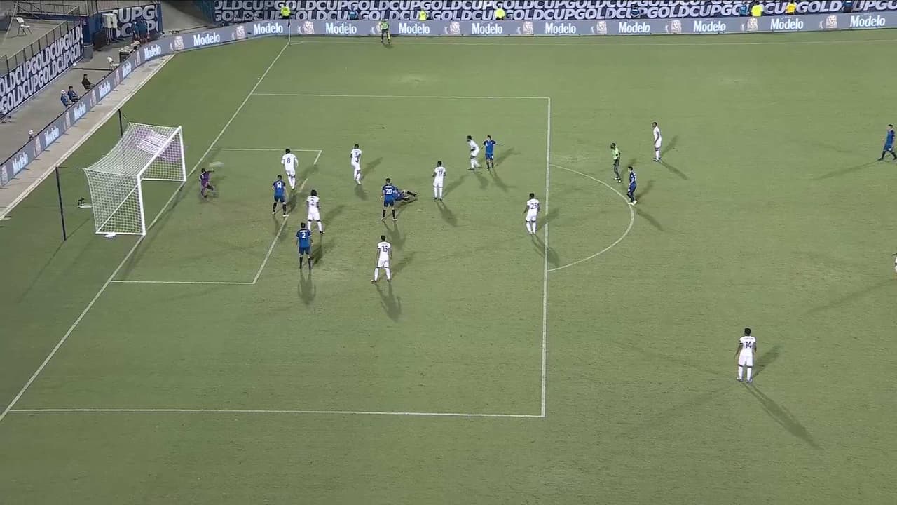 El medio de Guatemala tomó un rechace y le pegó con todo, pero se fue apenas desviado al 70'.
