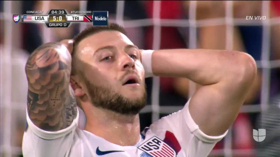 ¡CERCA!. Paul Arriola disparó que se estrella en el poste. on June 22, 2019