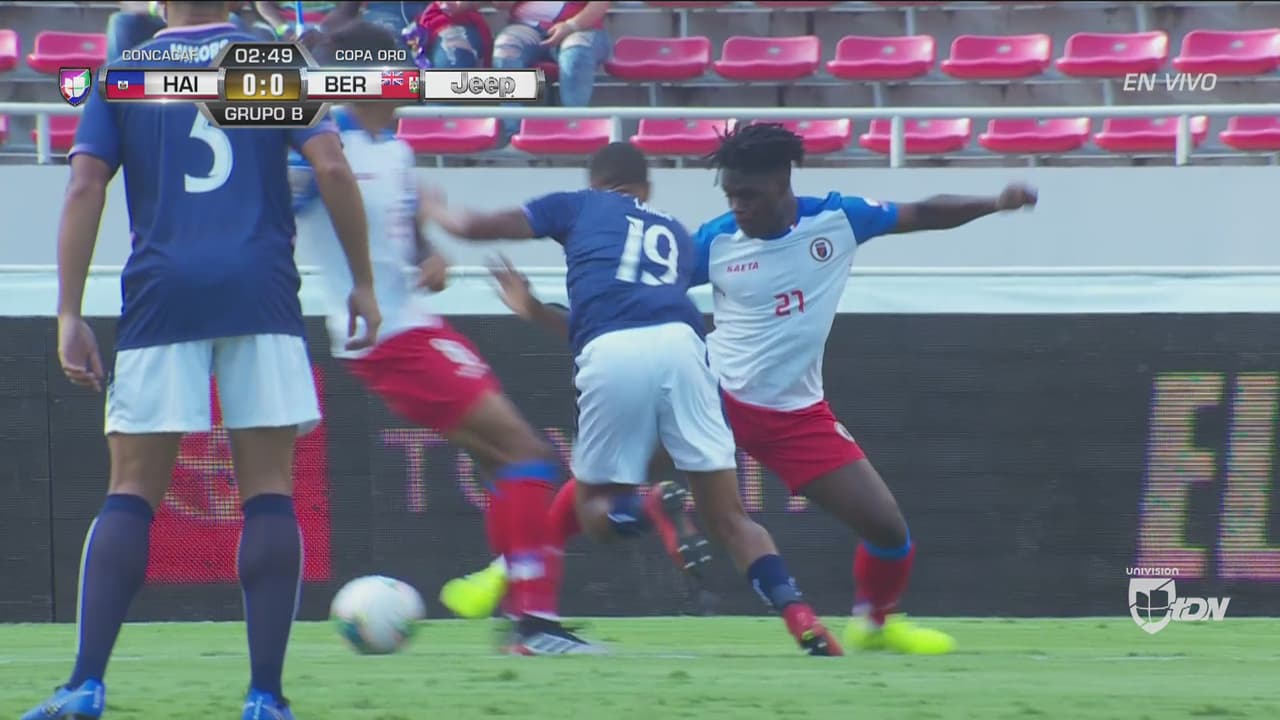 El lateral derecho de la isla caribeña intentó colarse al área luego de un tiro de esquina pero aflojó el cuerpo cuando sintió a los defensas haitianos, y el árbitro no se la compró.