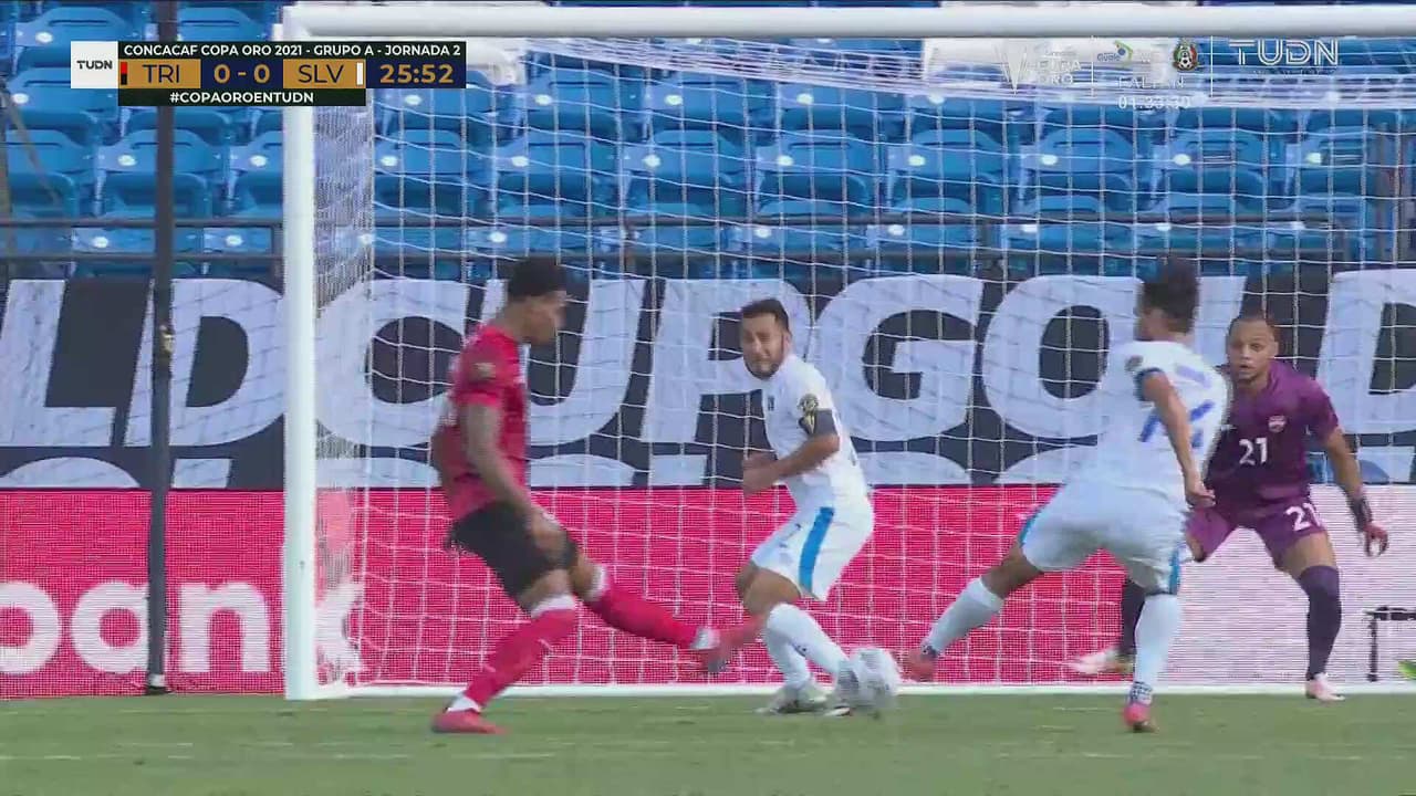 Pase de primera intención y Rivas busca la base del poste, no se canta el tanto al 26’.