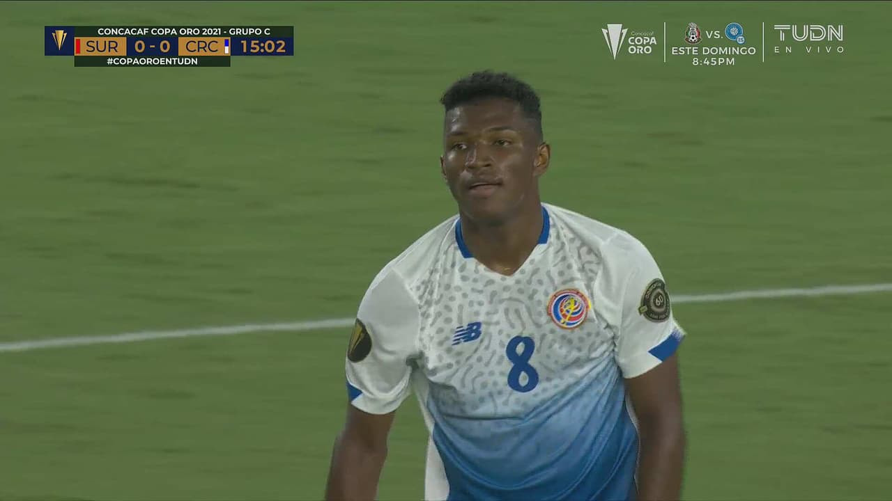 Costa Rica mandó el primer aviso a Surinam con un disparo de larga distancia al 15'.