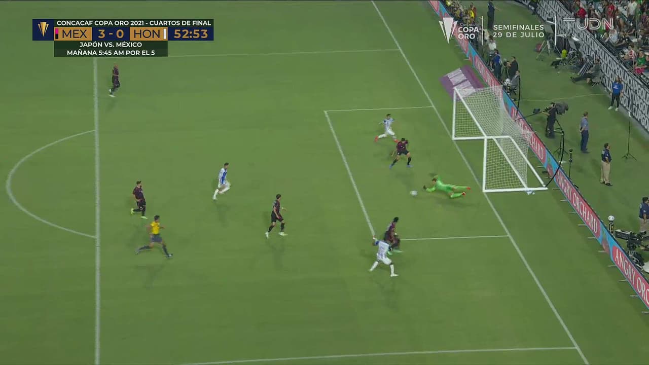 El delantero catracho remató de media vuelta, pero el portero alcanzó a desviar al 53’.