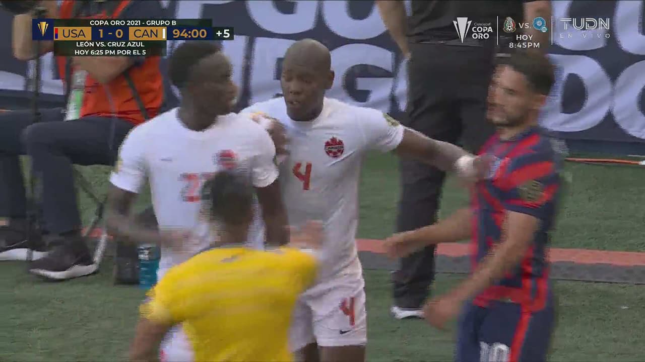 El jugador de Canadá lo derribó por la espalda al 94' y la afición pidió una tarjeta al silbante.