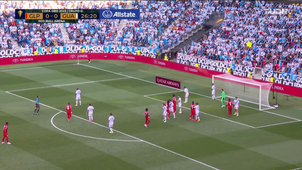 ¡Gol! Guadalupe 1| Guatemala 0. Andreaw Gravillon (Guadalupe) disparo de cabeza desde muy cerca tras un saque de esquina.