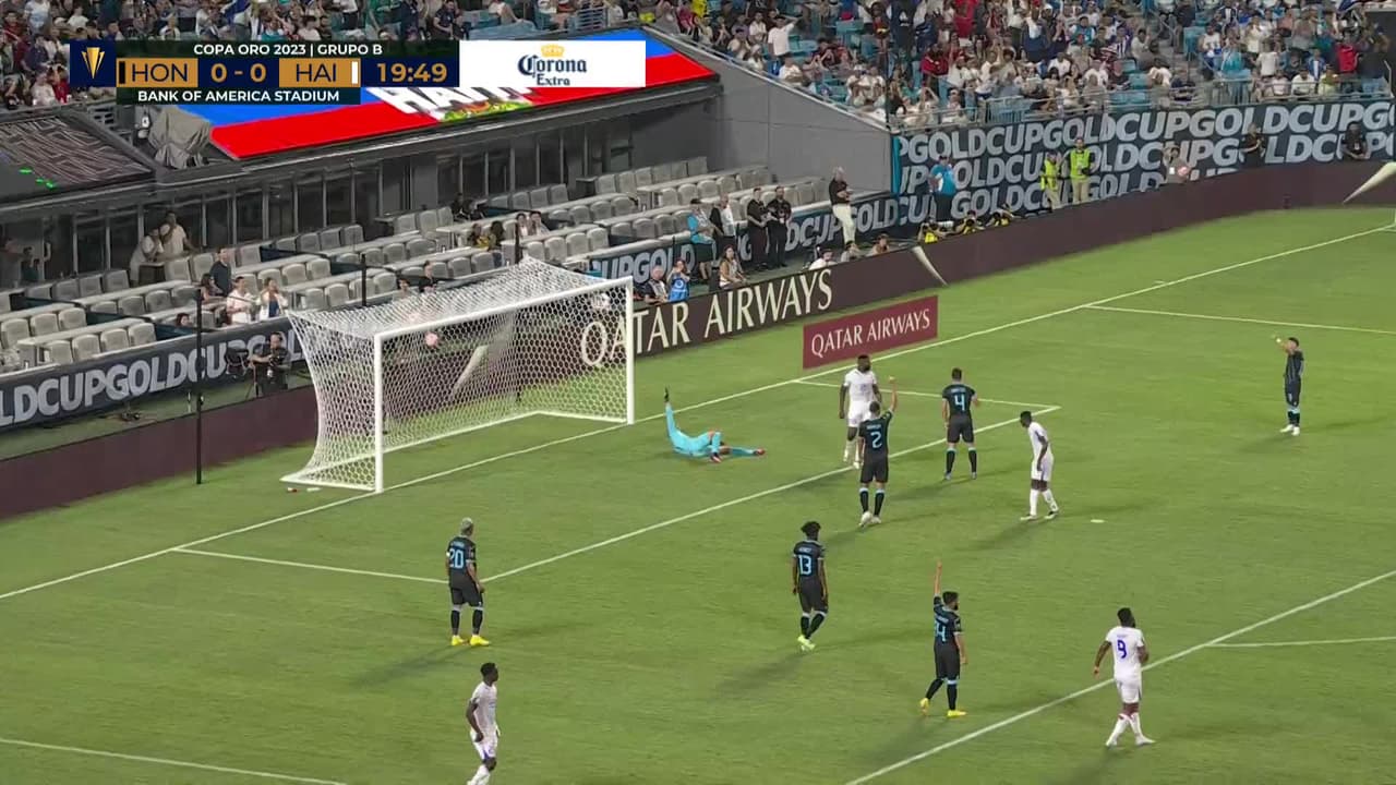¡Gol! Honduras 0| Haití 1. Frantzdy Pierrot (Haití) Disparo con la derecha desde muy cerca.