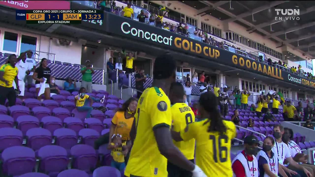 ¡Gol! Guadalupe 1| Jamaica 1. Cory Burke (Jamaica) Disparo con la derecha desde fuera del área por el lado derecho de la portería. Asistencia de Blair Turgott.