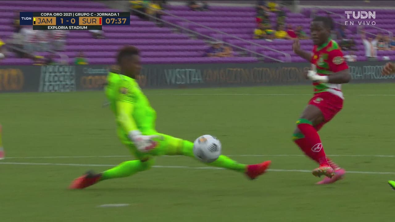 Geofilo recibió y disparó, pero el portero de Jamaica le negó el gol con la punta del pie al 7’.