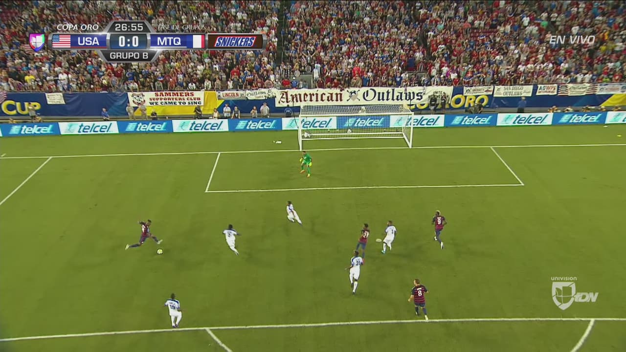 El delantero estadounidense se tardó en resolver y la defensa alcanzó a tapar su disparo. Estados Unidos amenaza pero no logra ponerse en ventaja ante Martinica.
