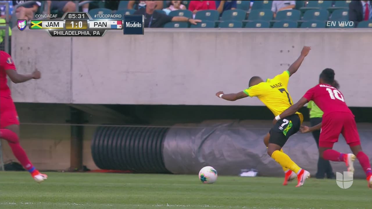 Jamaica tenía el segundo en la bolsa en un contragolpe pero el ‘10’ de Panamá dijo otra cosa deteniendo de la playera al crack jamaiquino ganándose una amarilla de rigor.