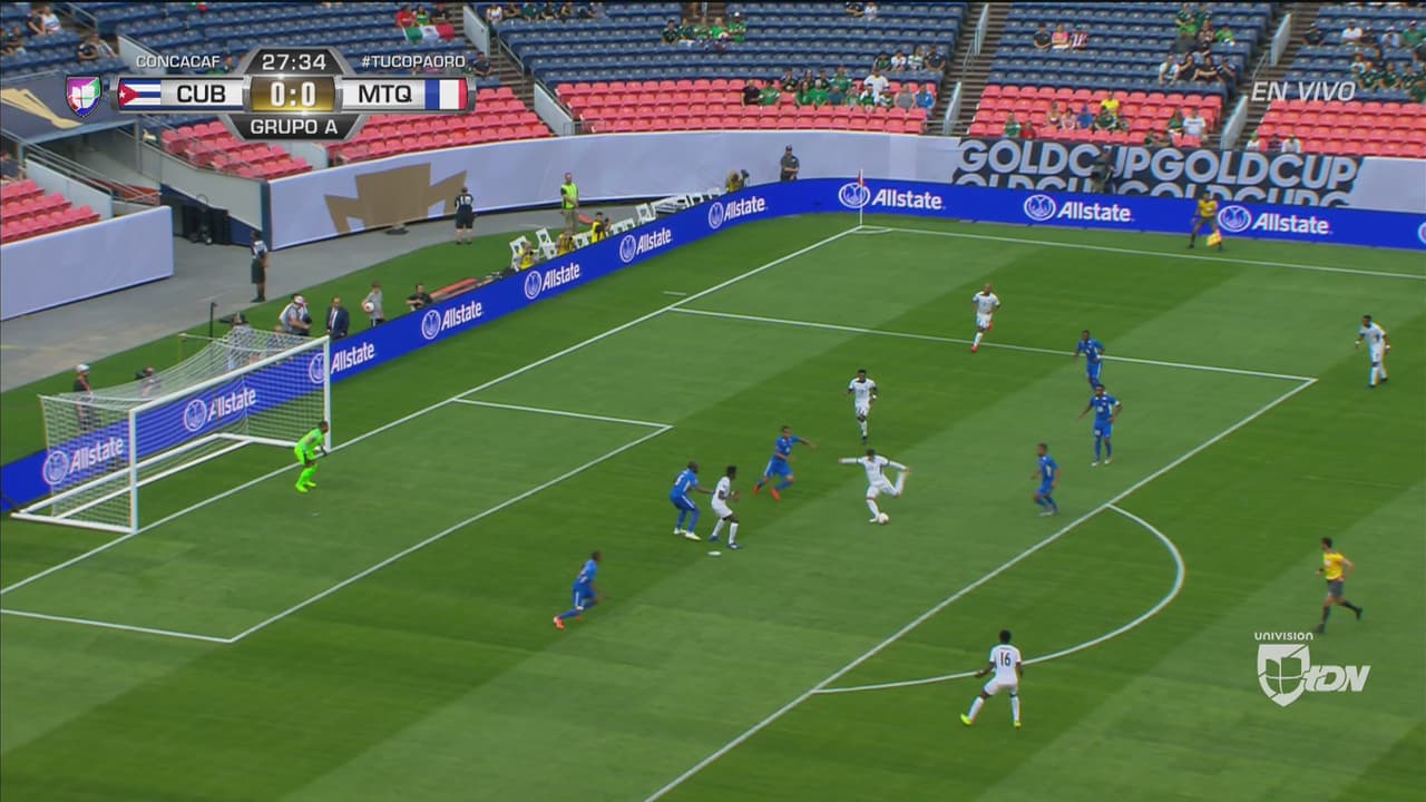Cuba tejió una buena jugada por la derecha que acabó con dos remates rechazados que propició un contragolpe peligroso en la propia cabaña cubana.