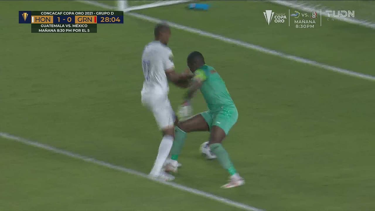Pasaron 28 minutos de juego y Honduras soportó los embates caribeños que casi abren el marcador, pero fue justo en esa jugada desafortunada para Granada que el gol cayó tras un error garrafal.