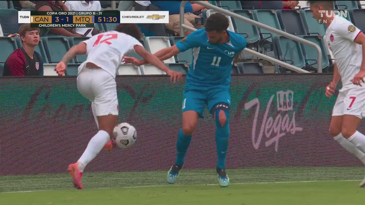 El atacante de Canadá se quitó a Emmanuel Rivière con un truco espectacular y lo bajan al minuto 51.