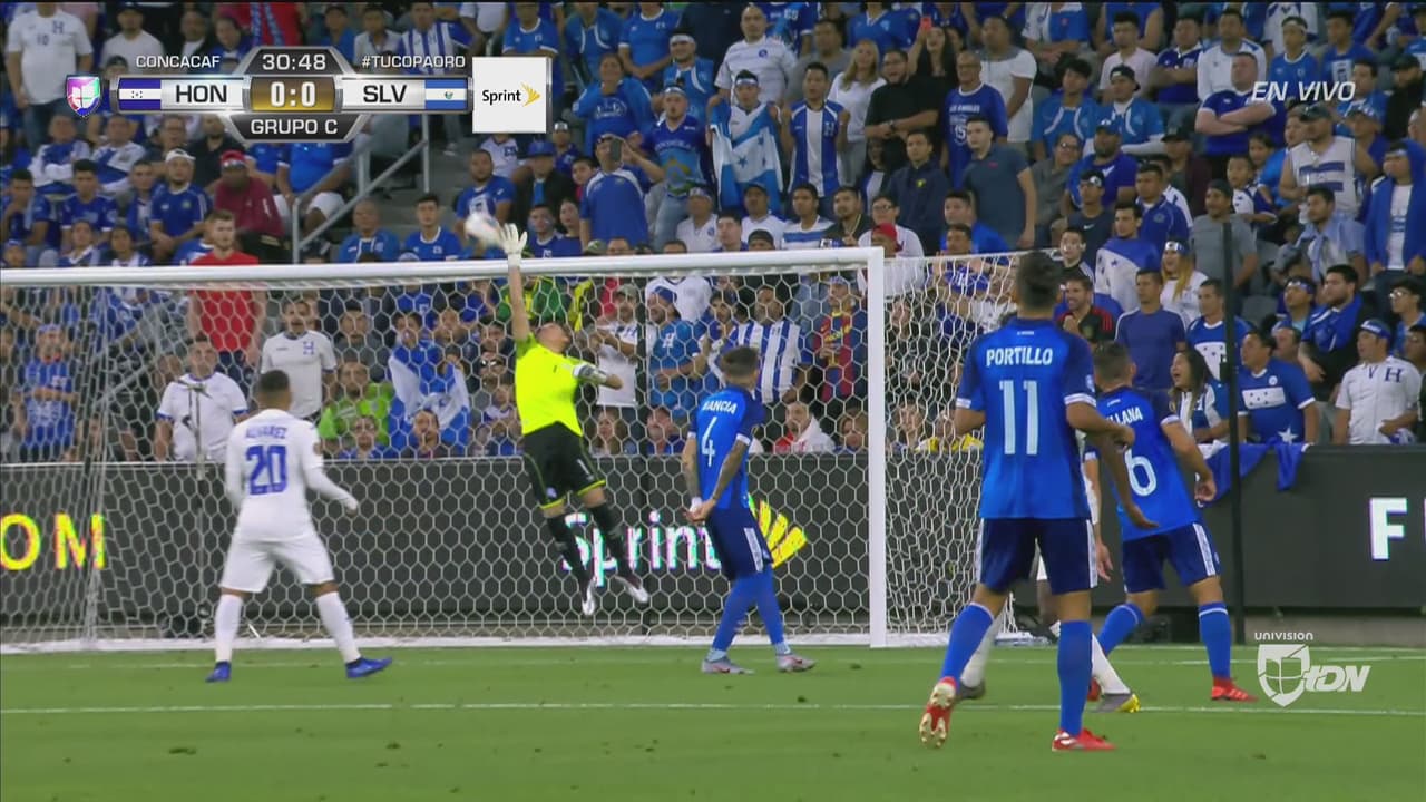 Un disparo potente de Félix Crisanto es rechazado al filo del marco por el meta salvadoreño y Honduras está cada vez más cerca.