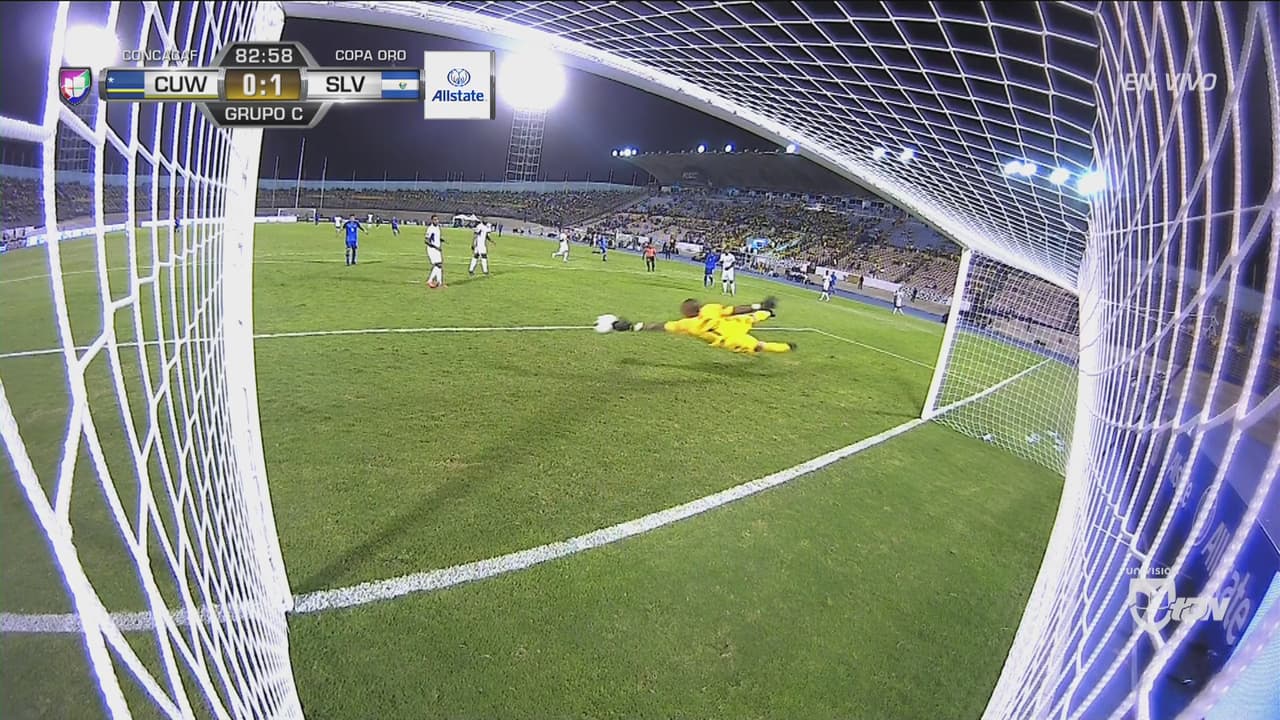 El portero de Curazao se tendió a mano izquierda para tapar el remate de media vuelta de Nelson Bonilla que sigue cazando el doblete en Kingston.