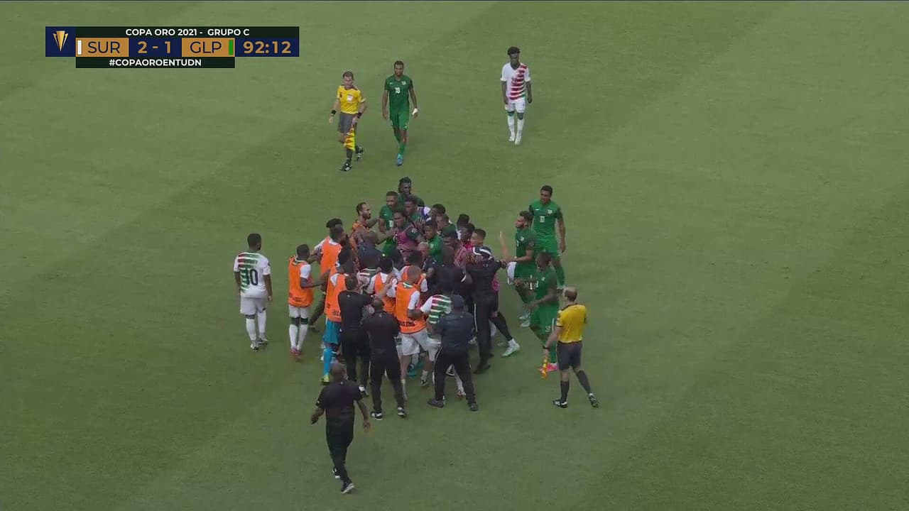 El defensa de Guadalupe derribó a Diego Biseswar y se desató una bronca al minuto 91.