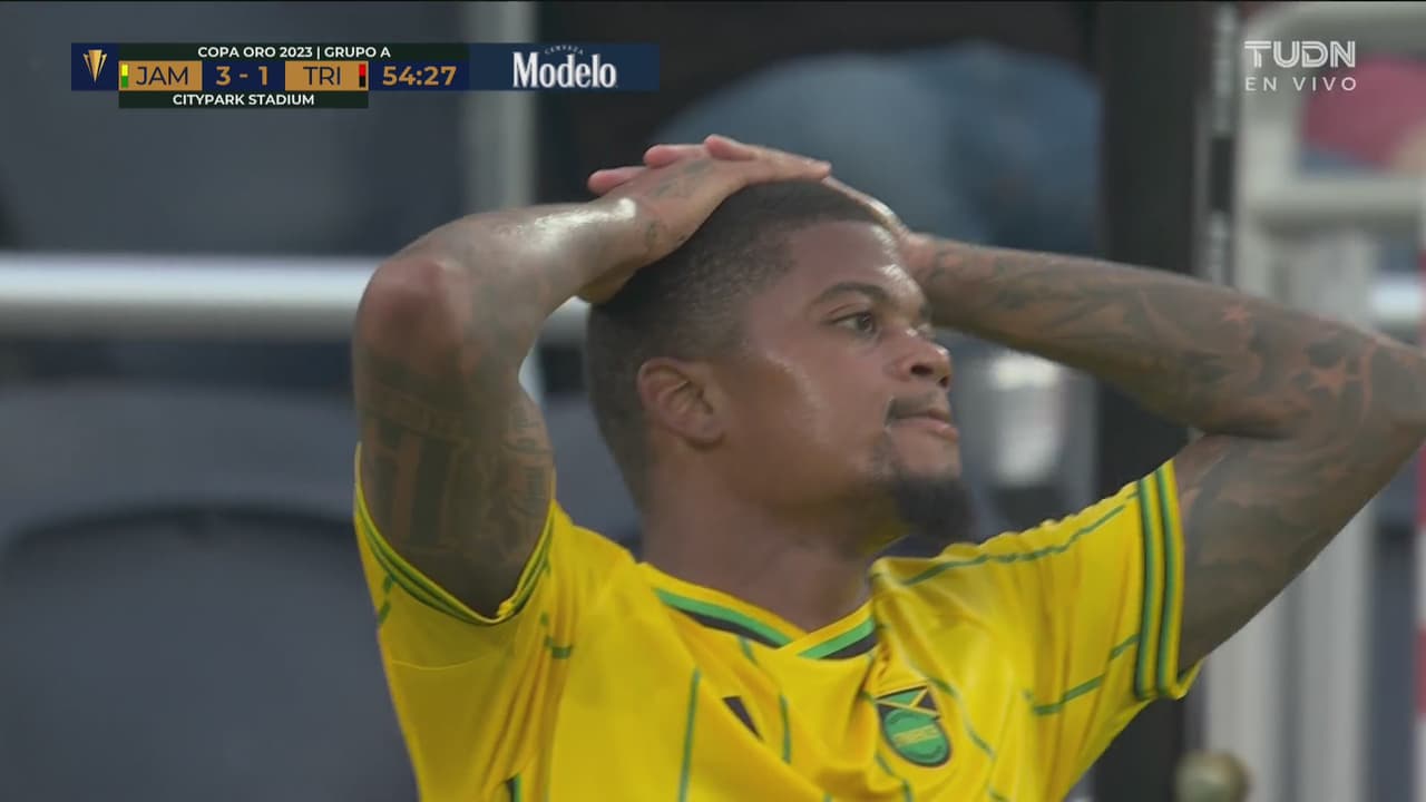 Solo frente a la portería el jugador de Jamaica hace lo más difícil, no concretar el cuarto para su equipo.