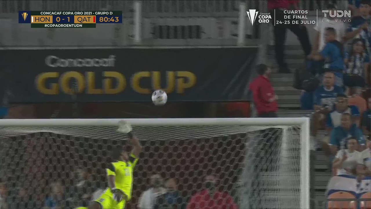 El mediocampista de Qatar le pegó de fuera del área y el balón se fue por arriba al 80’.