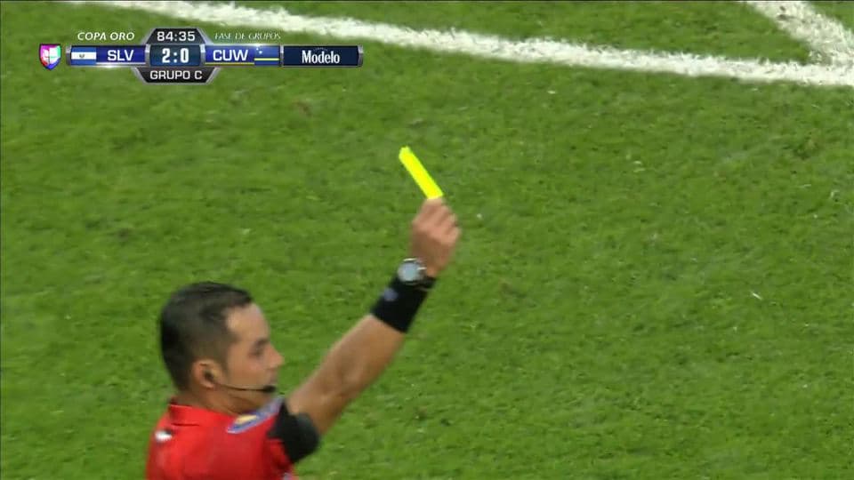 Tarjeta amarilla. El árbitro amonesta a Alexander Larín de El Salvador