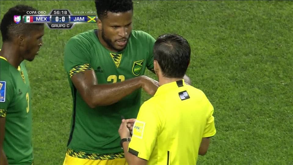 Tarjeta amarilla. El árbitro amonesta a Andre Blake de Jamaica on July 13, 2017