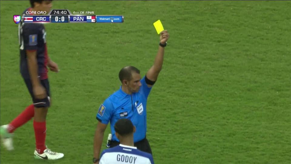 Tarjeta amarilla. El árbitro amonesta a Aníbal Godoy de Panama