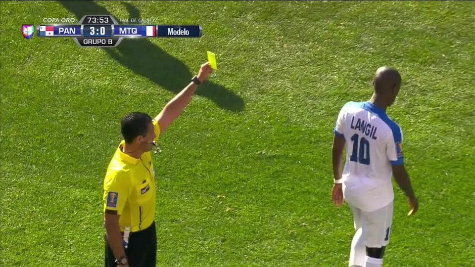 Tarjeta amarilla. El árbitro amonesta a Steeven Langil de Martinique