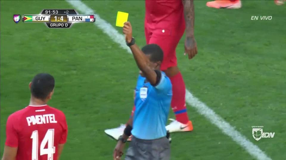 Tarjeta amarilla. El árbitro amonesta a Valentín Pimentel de Panama