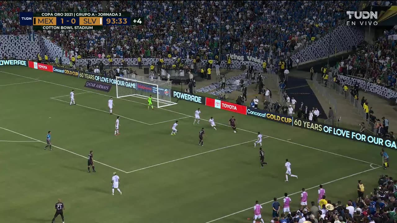 Tiro atajado al ángulo superior derecho. Alan Pulido (México) Disparo con la derecha desde fuera del área. Asistencia de Jonathan dos Santos.