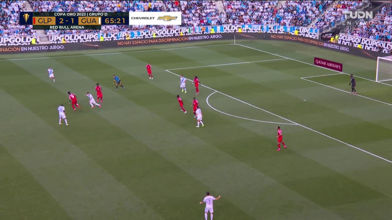 Tiro atajado por abajo a la izquierda. Anthony Baron (Guadalupe) Disparo con la derecha desde el lado izquierdo dentro del área. Asistencia de Thierry Ambrose pase largo.