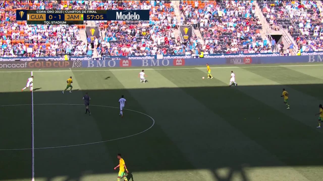 Tiro atajado raso al centro del arco. Carlos Mejía (Guatemala) Disparo con la derecha desde el centro del área. Asistencia de Rubio Rubín.
