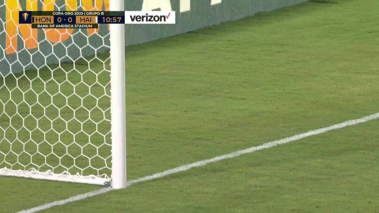 Tiro atajado. Derrick Etienne (Haití) Disparo con la derecha desde el centro del área.