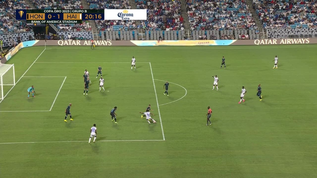 Tiro atajado. Duckens Nazon (Haití) Disparo con la derecha desde el lado izquierdo dentro del área.