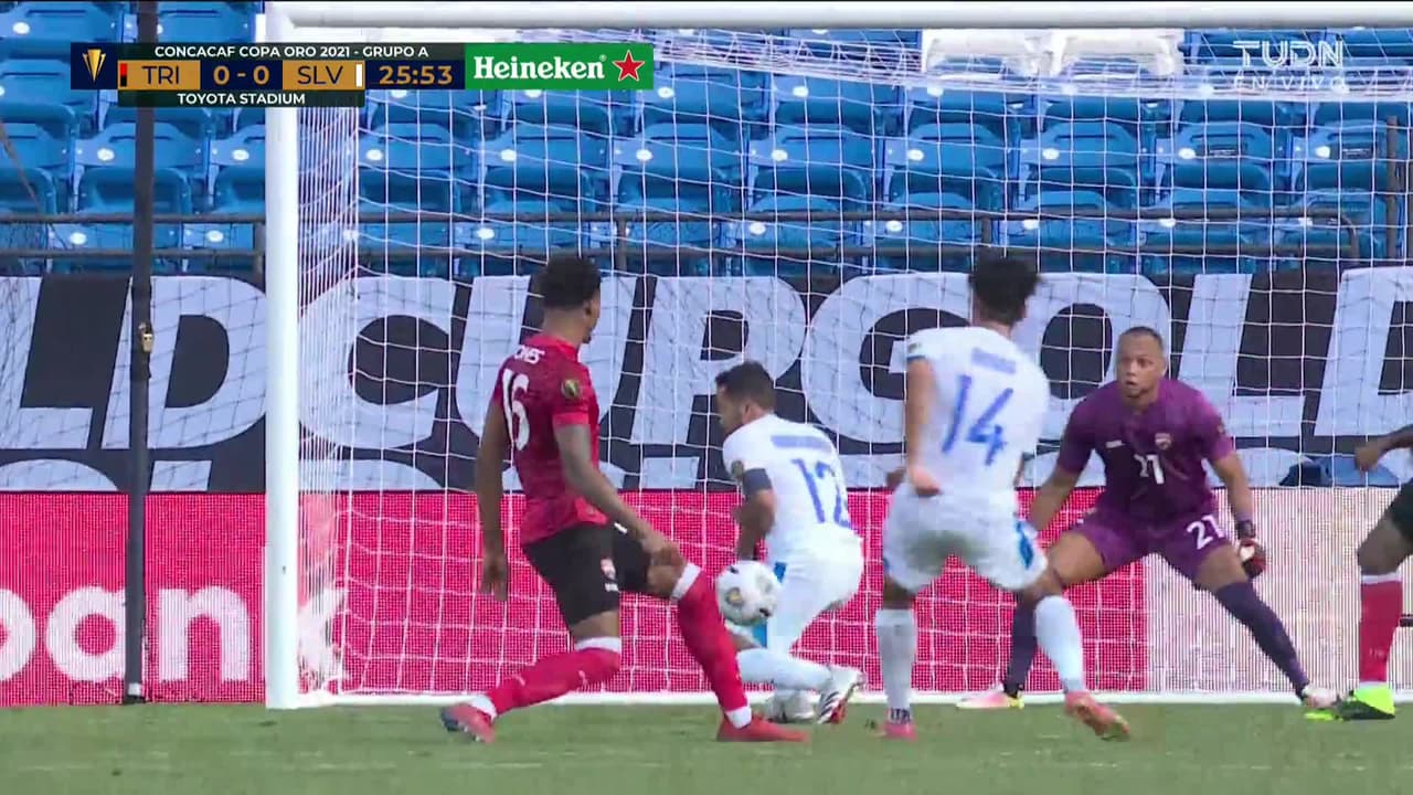 Tiro atajado por abajo a la izquierda. Joaquin Rivas (El Salvador) zurdazo desde el centro del área. Asistencia de Joshua Pérez.