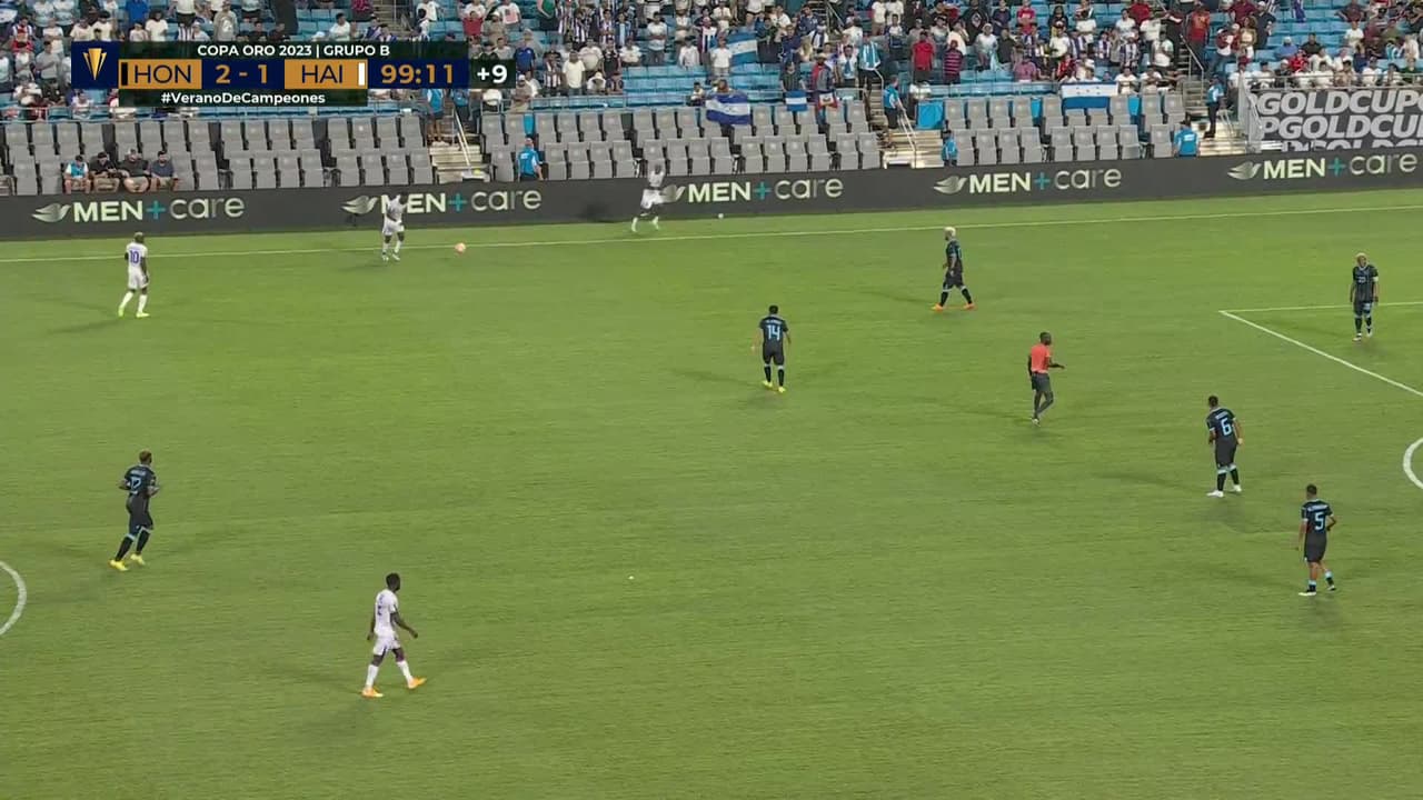 Tiro atajado. Jorge Álvarez (Honduras) Disparo con la derecha desde fuera del área.